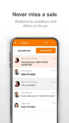 • Ask questions by publicly commenting on the ad's page and finalise deals through instant private messages.