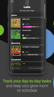 - Visualize the growth phases of your crop throughout the grow process. You can even upload images to see your plant’s progress from seed to harvest.