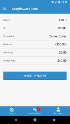 - Pay any outstanding balance due to the clinic via credit card through a secure network.