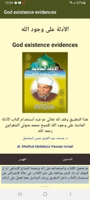 The application includes Physical evidence for the existence of God by Sheikh Muhammad Metwally AlShaarawy, which is one of the most beautiful and simple smooth works on the subject in a modern style, without Internet.