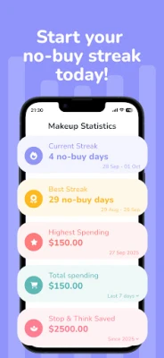 Streak & Progress Insights: Monitor your current no buy streak and celebrate your longest streak to date. These powerful metrics keep you focused on your goals and inspired to beat your personal records.