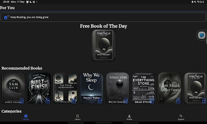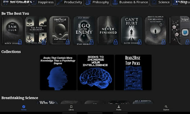 Tailor your reading journey based on your interests and goals. Whether you want to master productivity, build wealth, or improve relationships, Rising curates the best books to fuel your ambitions.