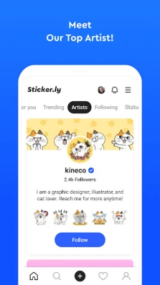 - Follow your favorite creators or artists to get new WA stickers instantly